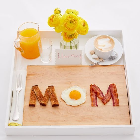Una buena idea para comenzar el día es brindándole de regalo un desayuno en la cama. Prepárale una bandeja con su jugo favorito, una taza de café, una flor y su desayuno preferido hecho por los nenes. (Foto tomada de Pinterest)