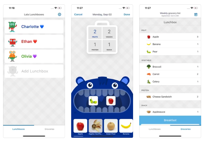 Parte del regreso a la escuela es planificar el almuerzo para toda la semana. Esta aplicación ayuda a simplificar ese proceso dejando que los nenes creen una “lonchera virtual” para cada día de la semana con anticipación. También ofrece la opción de crear una lista de compras para lo que haga falta para la próxima semana.