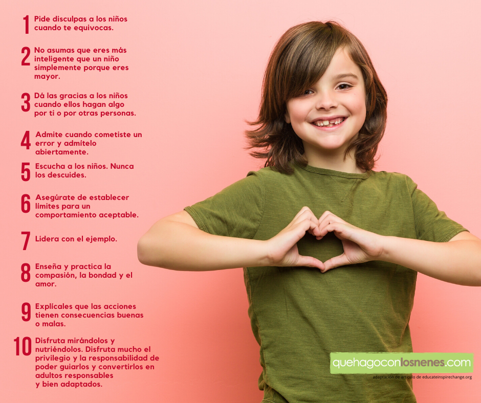 De ninguna manera estoy diciendo que todos los adultos deben seguir una lista establecida para ejercer una influencia positiva en los niños, pero estoy seguro de que muchos de los puntos en esta lista resonarán con ti y espero que simplemente actúes como un buen recordatorio de que nuestros hijos son nuestro futuro y que el futuro del planeta también está en sus manos. Entonces, cómo los tratamos y cuidamos con el tiempo se reflejará en nosotros y en el planeta.